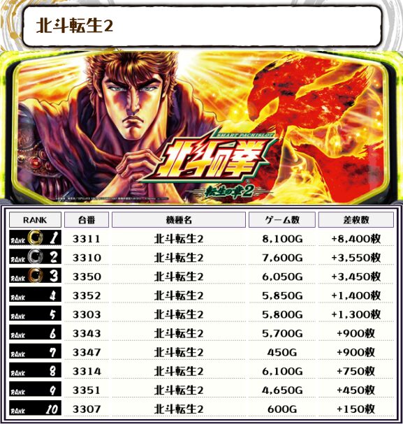また、この日の店内差枚数ランキングがこちら❗️
