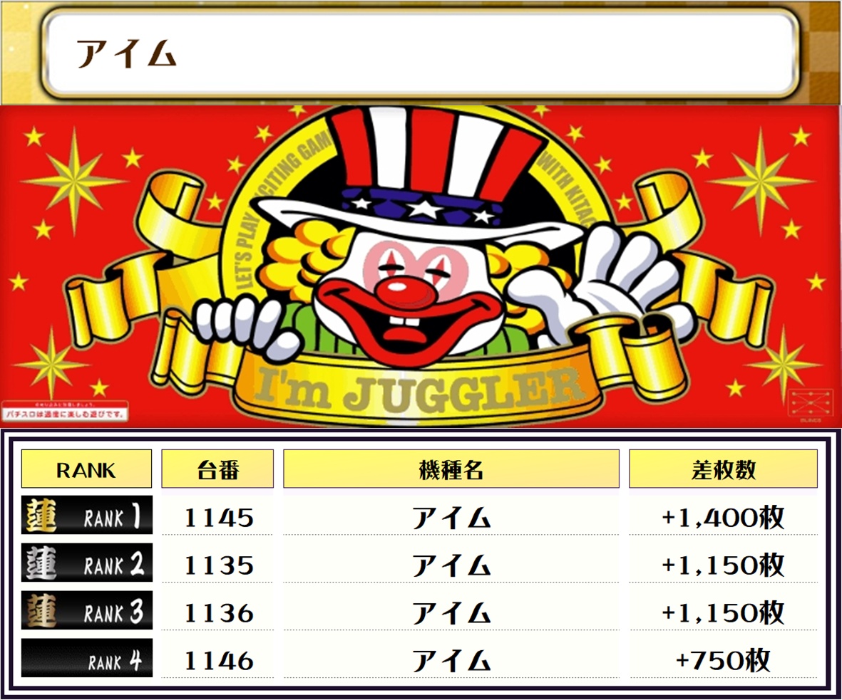 その他ではマイジャグ5やアイムのシマにも優秀台が並びであったようです🤡出ている台の近くにはチャンスが潜んでいた雰囲気ですね✨