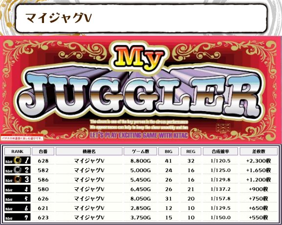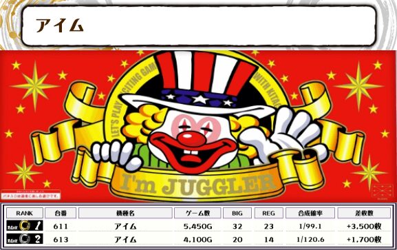 ジャグ系はアイムやマイジャグVが上位に入るほどの好成績📝 他の機種もランクインしているので全体的に優秀台が多かったようです🔥