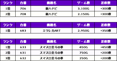 それでは早速【機種別差枚ランキング】をチェックしていきましょう🙆‍♀️
