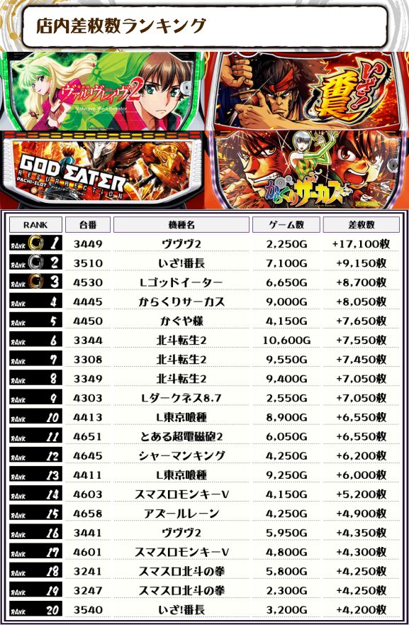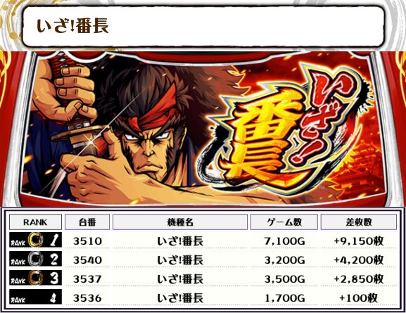 続く2位には【いざ!番長・3510番台】の+9,150枚、そして3位にはLゴッドイーター・4530番台】の+8,700枚がランクインですっ🏆🏆🏆🏆