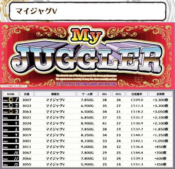 この日、全体の差枚トップに輝いたのは【ヴヴヴ2・3449番台】で+17,100枚‼️