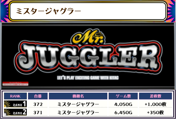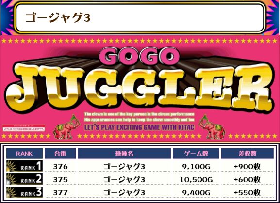 僕が特に気になったのはゴージャグ⭐️ ランクインした3台はほぼ1万G回されていますね🤩 これは打ち手の方も気づいていてぶん回していたのではないでしょうか🤡