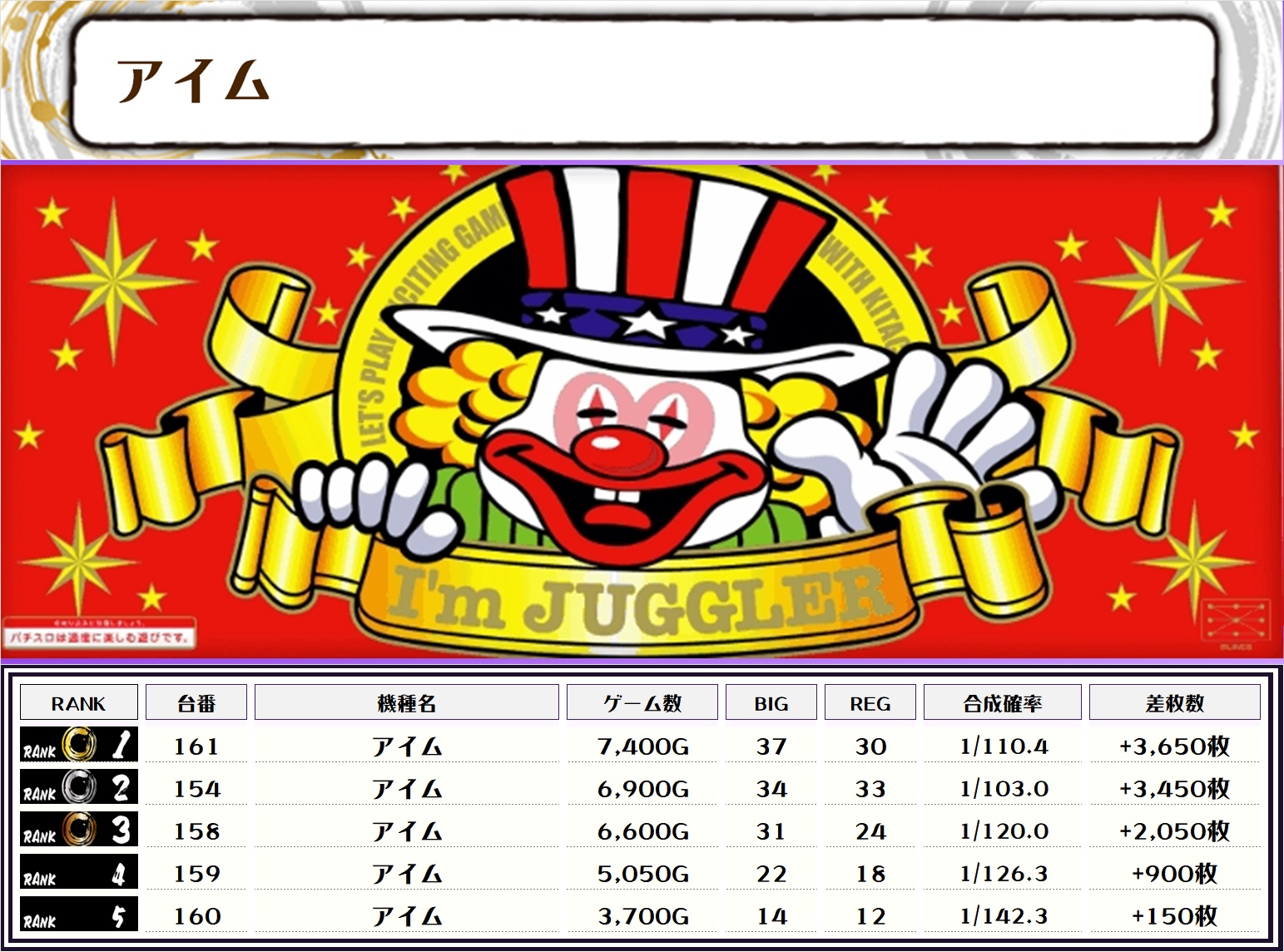 それでは早速【機種別差枚ランキング】をチェックしていきましょう🙆‍♀️
