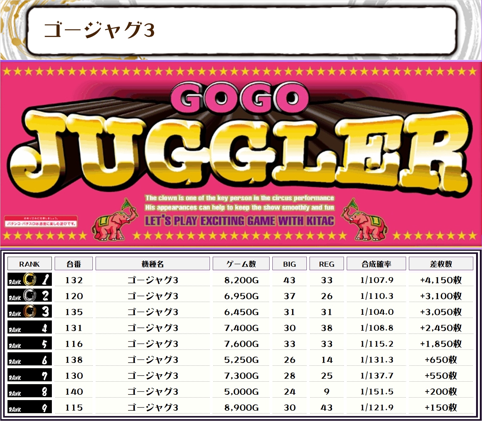 ピックアップした機種は稼働が高く、勝率も良かったものです👍