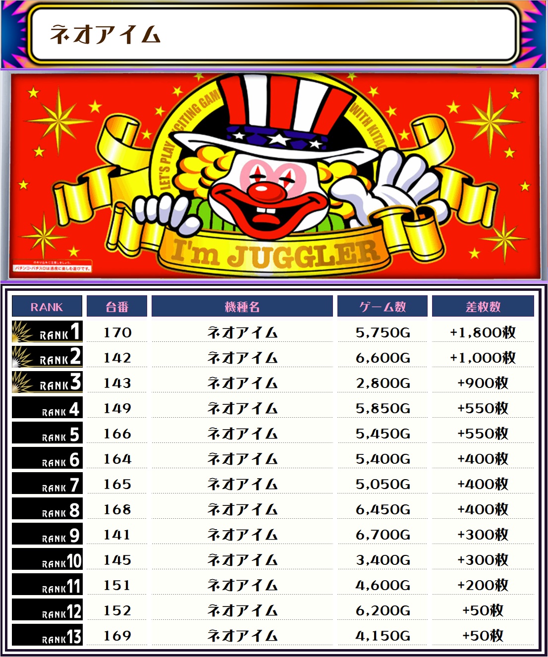 また、この日の店内差枚ランキングがこちら❗️