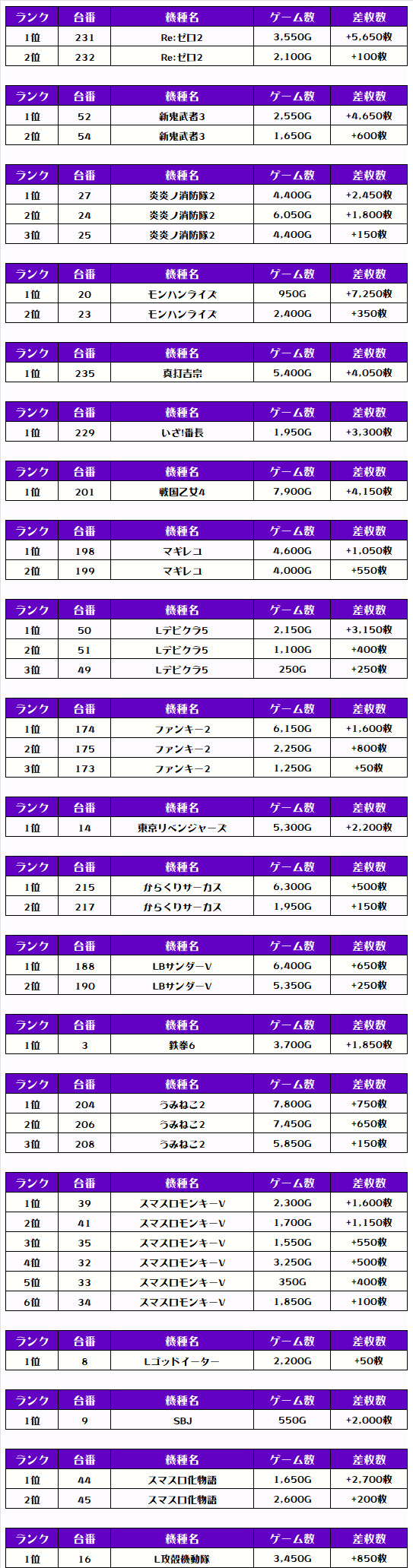 その他の機種の差枚はコチラ❗️