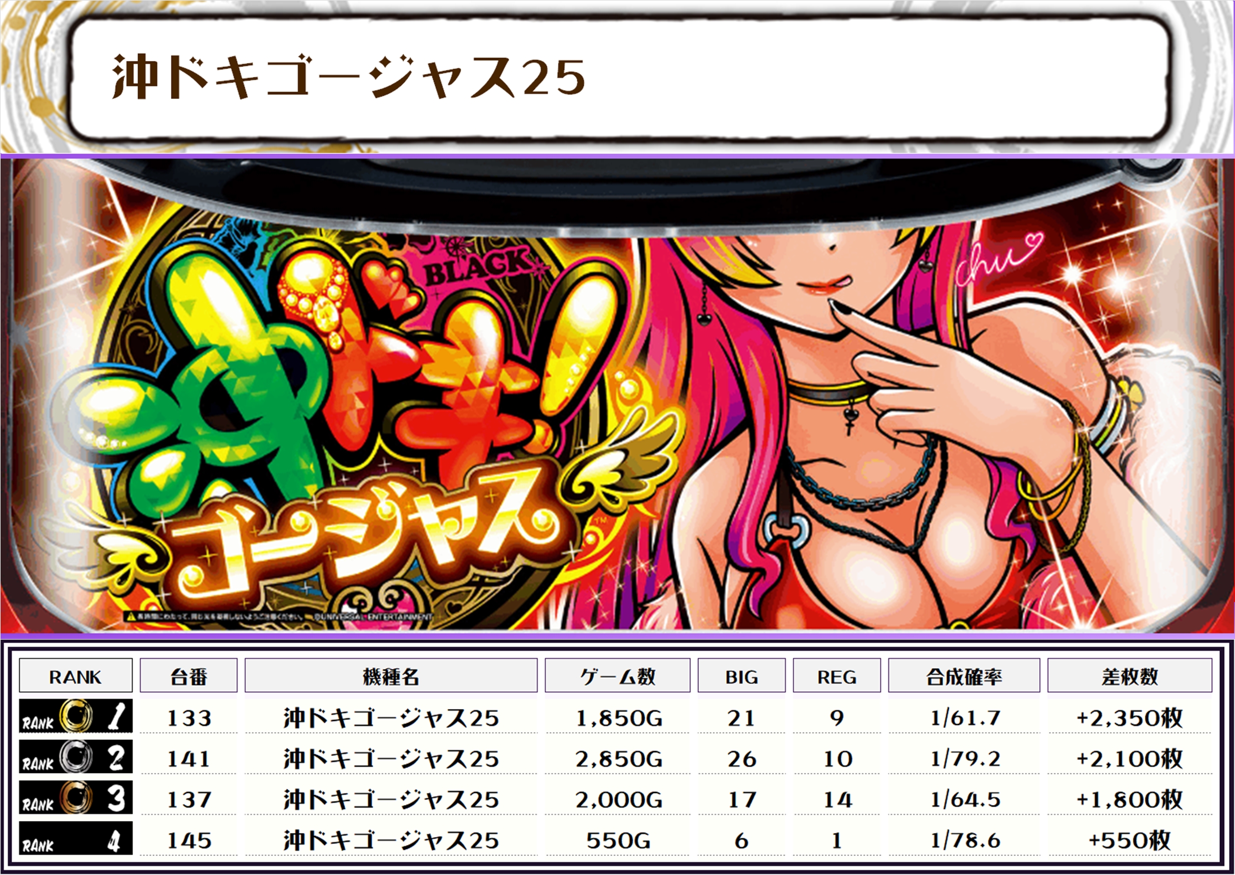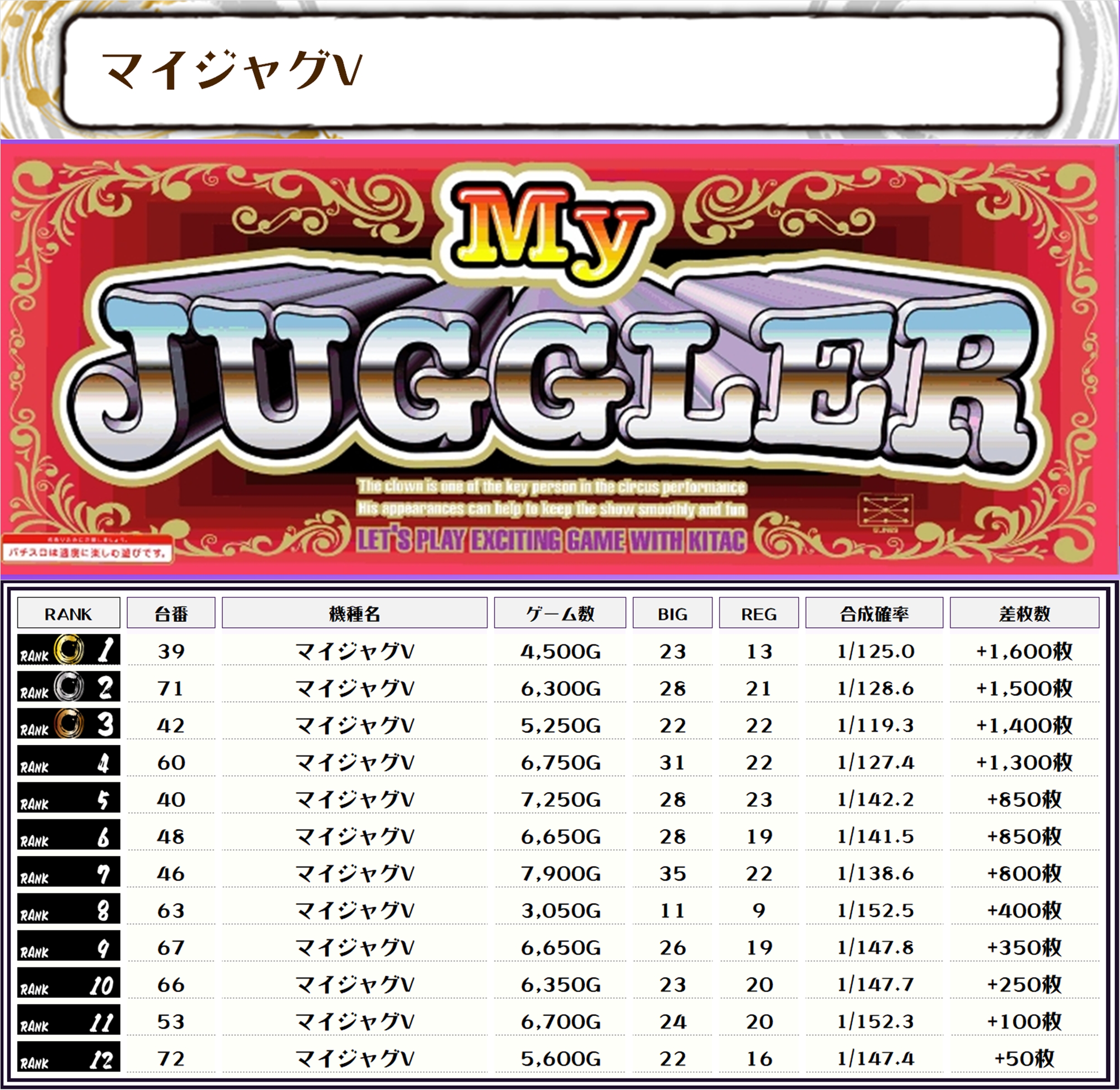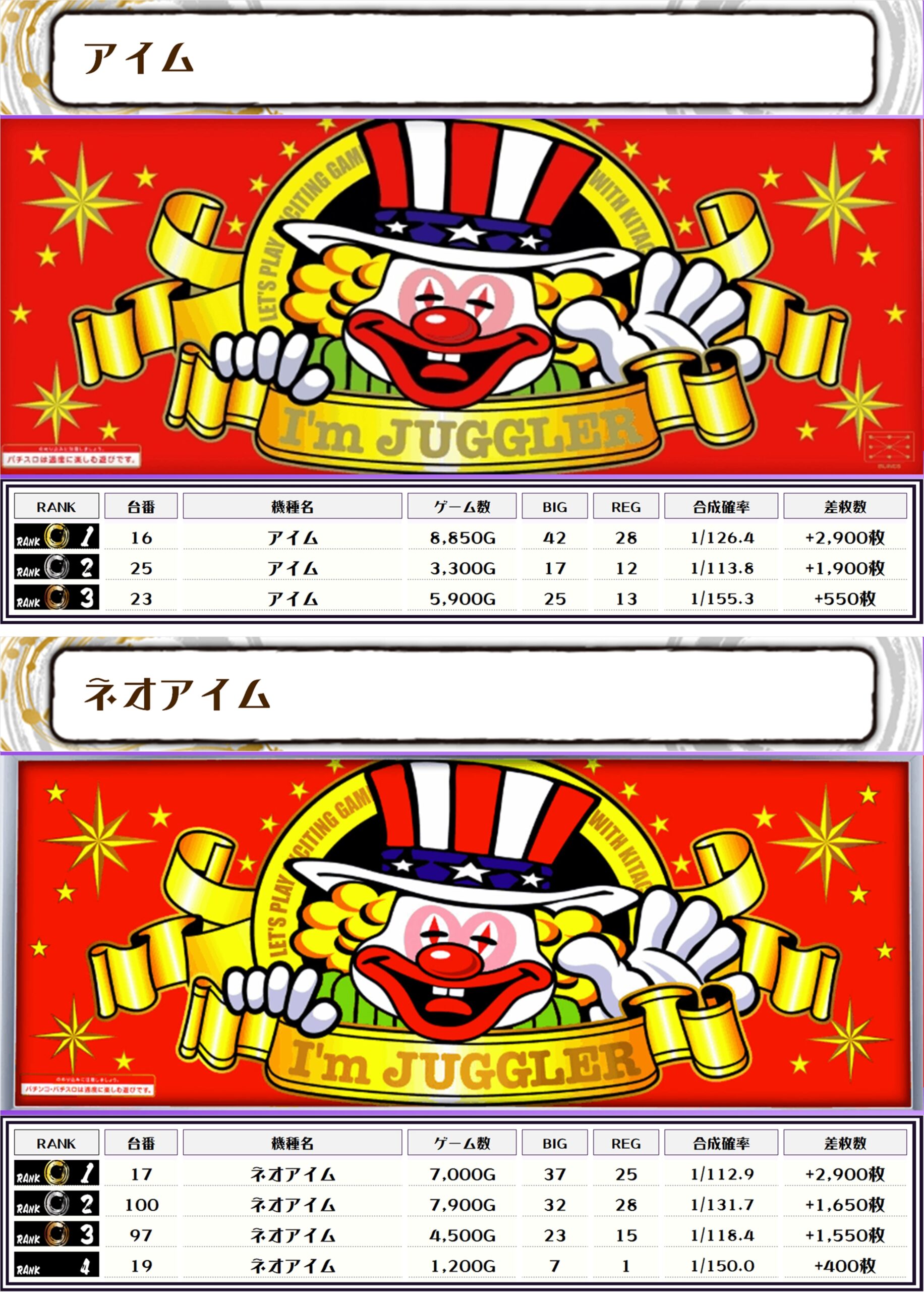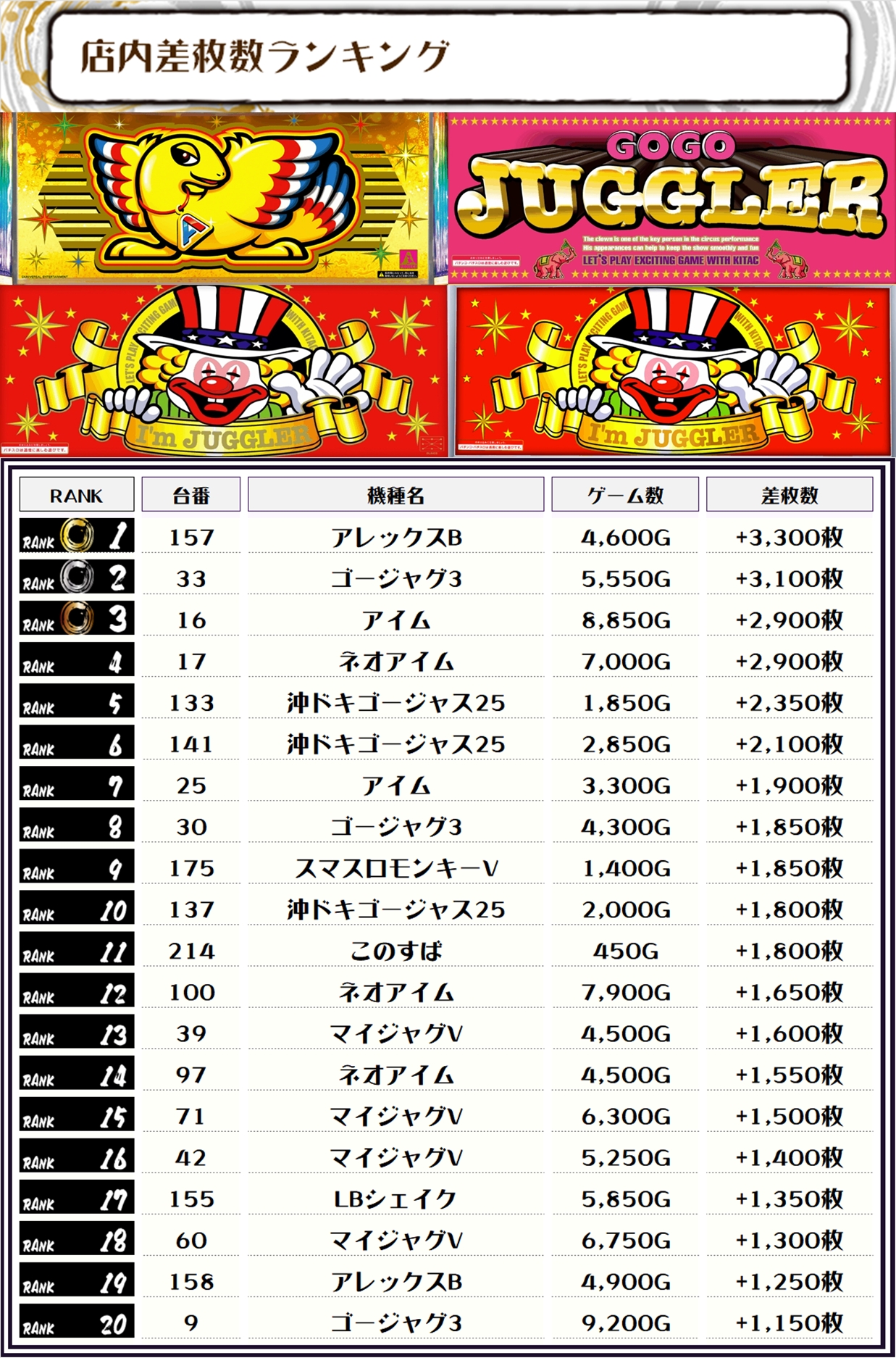 ワンフロアすべてがジャグラー系、という同店らしいランキングとなりました🤡