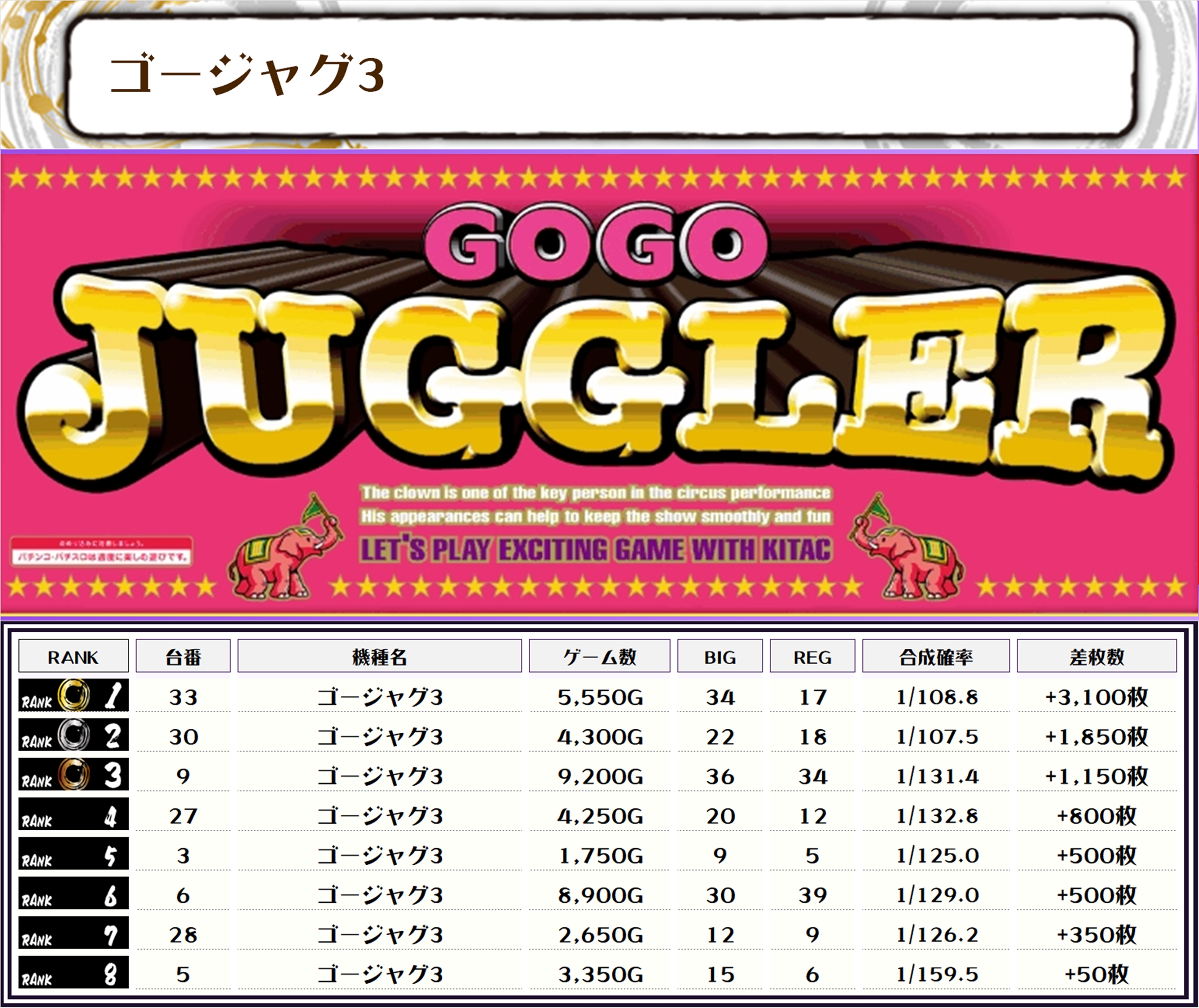 2位には【ゴージャグ3・33番台】の+3,100枚、そして3位には【アイム・16番台】の+2,900枚がランクインっ🏆🏆🏆🏆